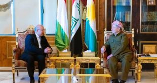 استقبل الزعيم الكردي مسعود بارزاني، اليوم الخميس، في بيرمام، حسن محمد زمان، سفير دولة الكويت …