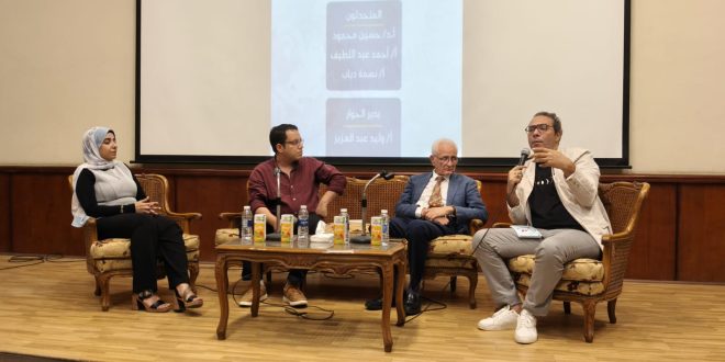 ثم تحدث الكاتب والمترجم أحمد عبد اللطيف، الذي طرح مجموعة من التساؤلات الجوهرية حول مدى قدرة الذكاء الاصطناعي على التعامل مع النصوص الأدبية المعقدة، متسائلًا ما إذا كان في وسع الآلة أن تترجم عملًا بحجم «دون كيخوتيه» لثيربانتس، أو أن تحافظ على أسلوب المؤلف وتفهم المجاز الذي يثري النص الأدبي. كما ناقش في حديثه إشكالية ترجمة الإحالات الثقافية، وكيف يتعامل الذكاء الاصطناعي مع الكتاب الأسلوبيين الذين يكثرون من الجمل الاعتراضية أو يستخدمون تراكيب لغوية غير مألوفة، مستعرضًا نماذج عملية توضح حدود قدرة الآلة في هذا المجال.