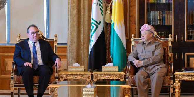 واستقبل مسعود بارزاني، اليوم الثلاثاء، في بيرمام، وفداً أمريكيا، برئاسة جوشوا هاريس، القائم بأعمال السفارة الأمريكية في بغداد.