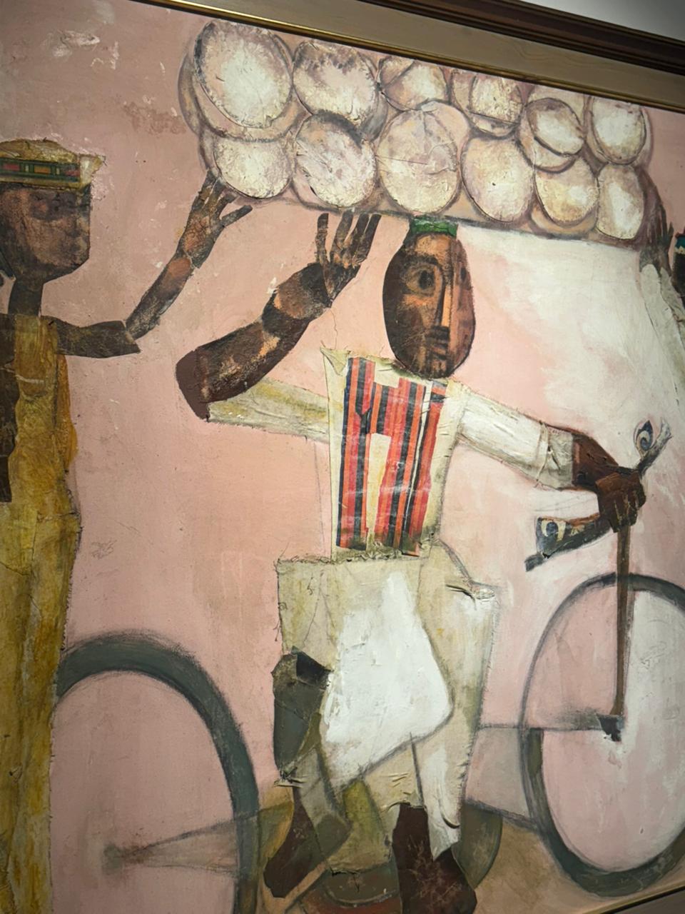 وتابع أشرف رضا، أن جورج بهجوري يقدم موروثات بصرية وإنسانية مهمة في عصر التقدم التكنولوجي والذكاء الاصطناعي، حيث يعيد من خلال أعماله استدعاء ذكريات الماضي والأحياء الشعبية الجميلة، ويجسد شخصية الإنسان المصري كما نراها في الشارع والحياة اليومية.