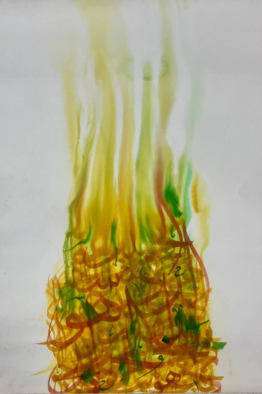الحرف العربي، بمرونته وانسيابه، قريب بطبيعته من التجربة الصوفية. هو لا ينفصل عن الجسد يُكتب بنَفَس، ويُمدّ ويُقصّر، ويعلو وينخفض. حين يُلوَّن، يدخل في علاقة أوضح مع النفس والوجدان. اللون يفتح للحرف باب الإحساس، كما يفتح الذكر باب الحال.