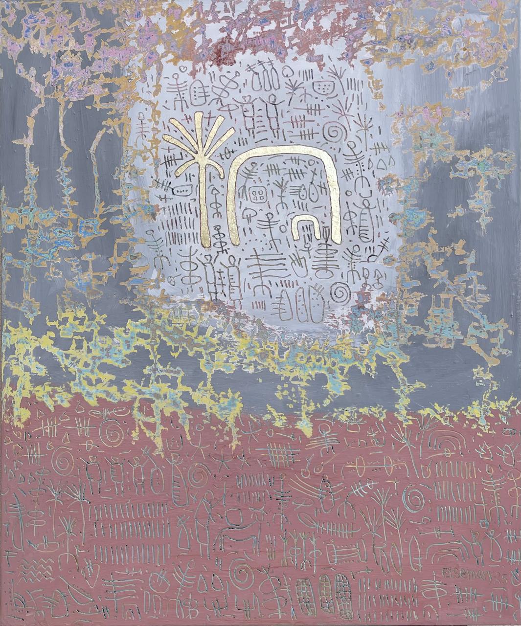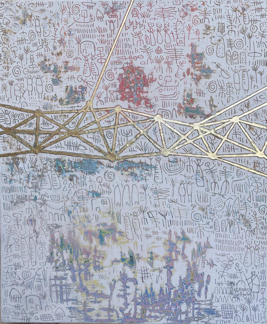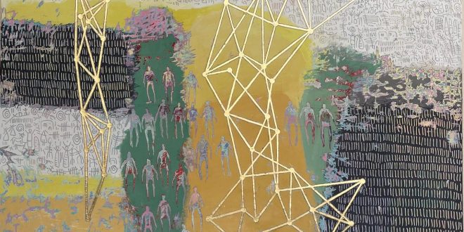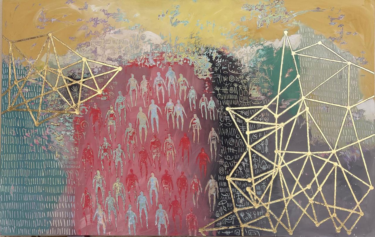وأكد ياسر منجى، أن الفنان ياسر المنجى يواصل في تجربته الراهنة أمشاج، تطوير تلك الشبكات الخطية التي ظهرت بوضوح في معرض سابق له حمل اسم خيمة، مستثمرا رقائق الذهب في بعض المسارات، لا بوصفها عنصرا تزيينيا أو علامة على الرفاه، بل باعتبارها وللمفارقة أثرا إشاريا بالغ الاقتصاد، يحيل إلى مفاهيم الهيمنة، والاحتواء، والوميض العابر، وإلى العلاقة الملتبسة بين المقدس واليومي.