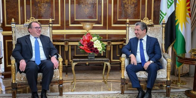 استقبل رئيس حكومة إقليم كوردستان مسرور بارزاني، اليوم الثلاثاء، القائم بأعمال السفارة الأمريكية في العراق جوشوا هاريس.