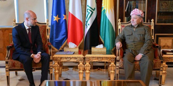 استقبل الزعيم الكردي مسعود بارزاني، اليوم الجمعة، في بيرمام، جان نويل بارو، وزير خارجية فرنسا.