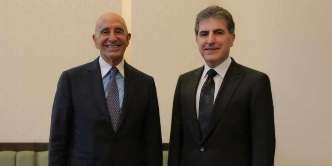 وبحث رئيس إقليم كوردستان نيجيرفان بارزاني اليوم الجمعة مع توم باراك، سفير الولايات المتحدة لدى الجمهورية التركية والمبعوث الخاص إلى سوريا حول آخر التطورات الإقليمية.
